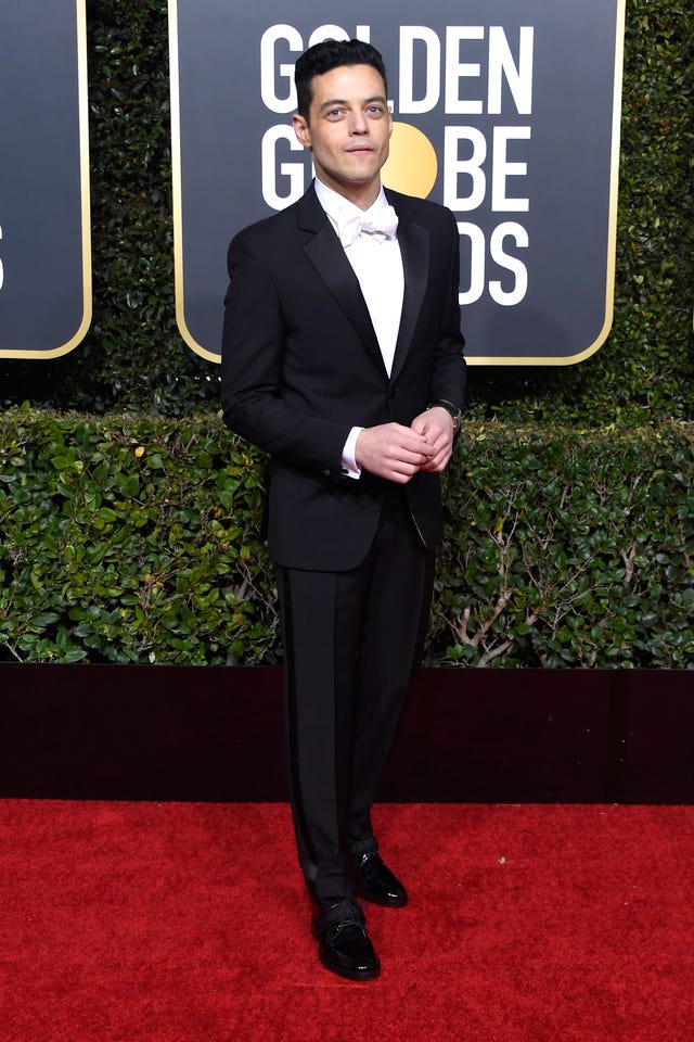 The Bohemian Rhapsody actor took home the Best Actor award in a classic black tuxedo with white bib poplin shirt, silk bowtie and patent leather shoes -- all designed by Clare Waight Keller of Givenchy.