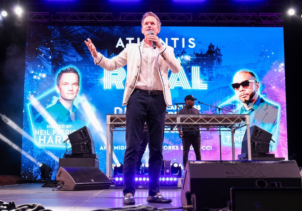 The actor graces the stage during the New Year’s Eve bash Like a Royal on Dec. 31 in Nassau, Bahamas.