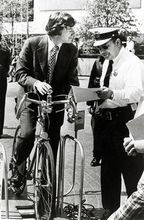 Jerry Springer chats with a Cincinnati police officer in Cincinnati, Ohio, in 1970. The TV host was a Cincinnati councilman and the mayor of the city.