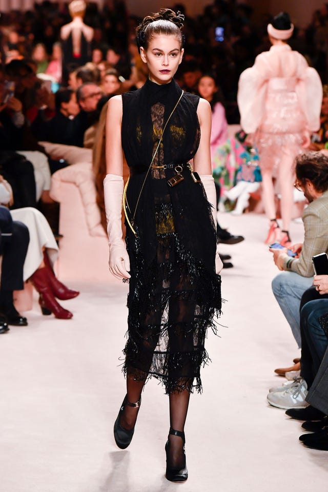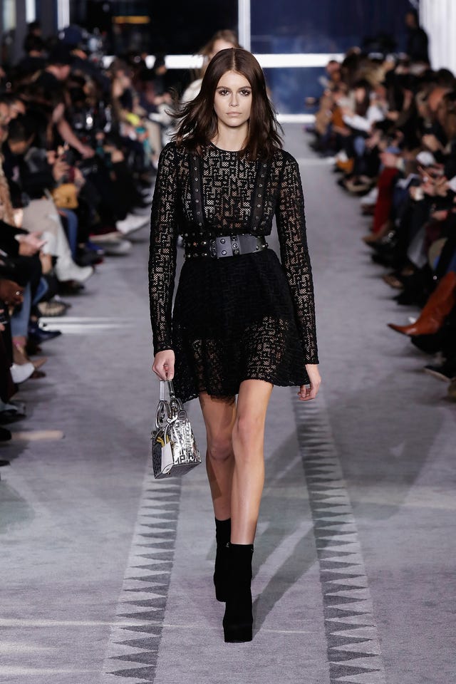Black lace got a punkish yet still romantic makeover for the Fendi Ready-to-Wear Fall/Winter 2020-2021 fashion show during Milan Fashion Week on Feb. 20.