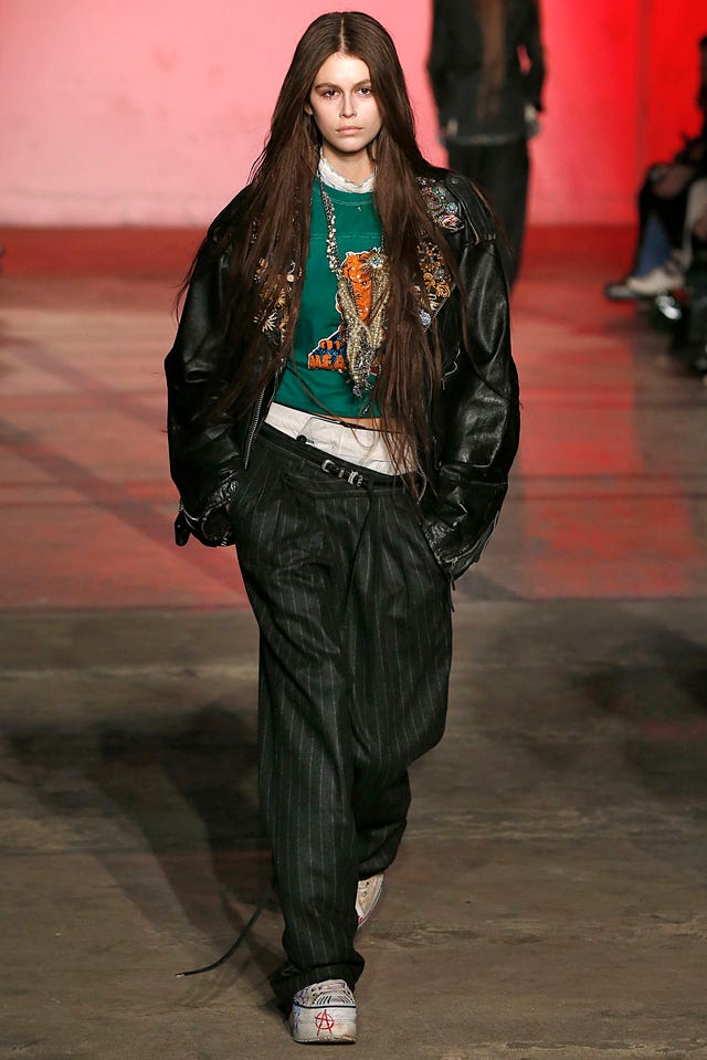 Gerber walked in two runway shows on Oct. 3, and the Miu Miu turn could only be described as country-gone-punk.