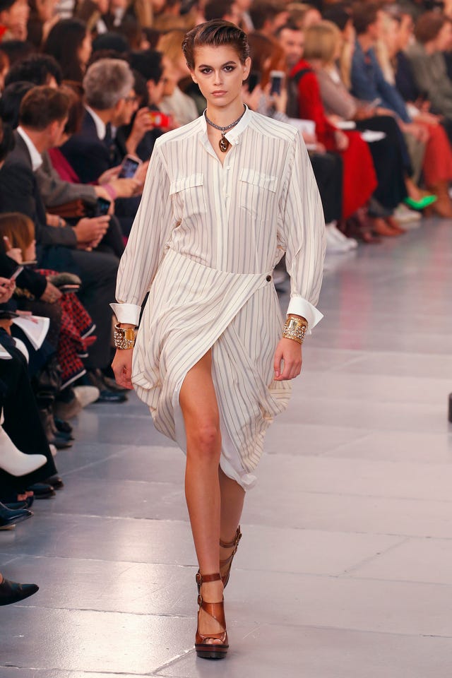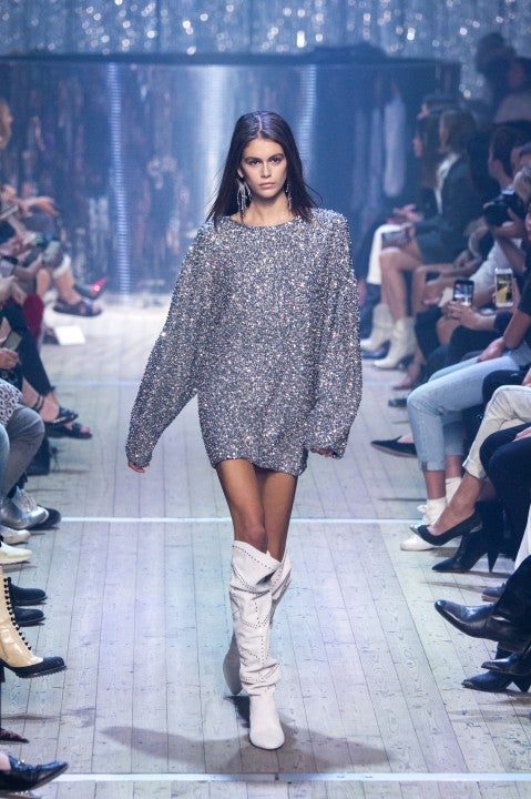 Gerber is truly taking over the runways in her first Fashion Week season. She walked in three shows on Sept. 28, including dunning this summery, sequined dress during Chloe's Paris Fashion Week presentation.