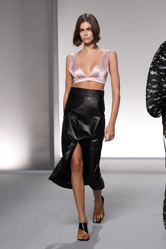 Cindy Crawford and Rande Gerber's daughter made her catwalk debut at NYFW, strutting her stuff in bold graphic separates at the Calvin Klein show on Sept. 7.