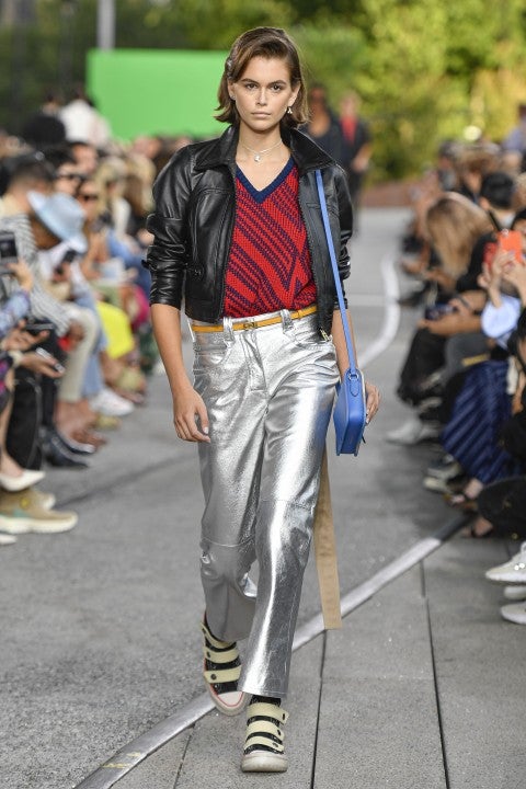Gerber stunned in a leather and metallic look on the Coach ready-to-wear runway on Sept. 12.