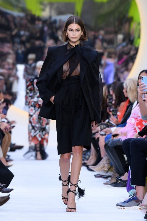 She's back in black! Gerber donned a playful LBD on the Valentino runway on Oct. 1.