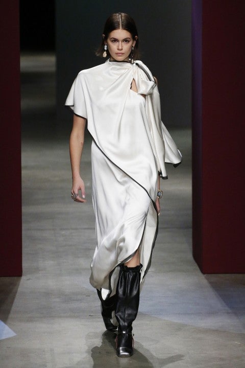 Sumptuous silk made up Gerber's attire when she hit the catwalk for the Ports 1961 show during Milan Fashion Week on Feb. 23.
