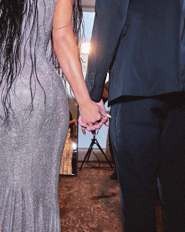 Kim Kardashian and Pete Davidson hold hands before attending the White House Correspondents' Association Dinner event.