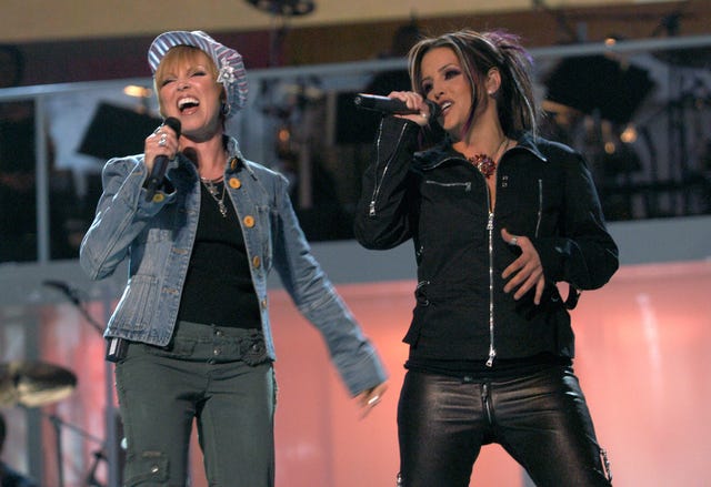 Lisa Marie belts out a tune with rock icon Pat Benatar during VH1 Divas Duets: A Concert to Benefit the VH1 Save the Music Foundation in Las Vegas, Nevada, in 2003.