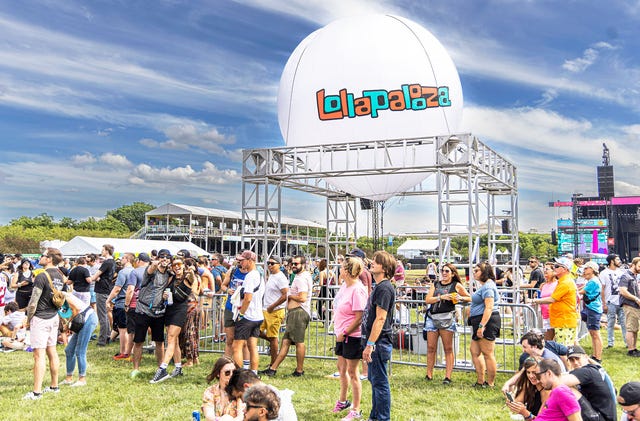General view of the atmosphere at the Coinbase stage at Lollapalooza in Chicago, Illinois.