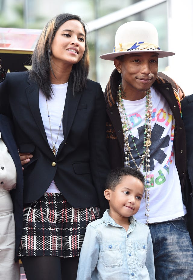 Pharrell Williams, wife Helen Lasichanh and son Rocket Ayer Williams at hollywood walk of fame ceremony in 2014