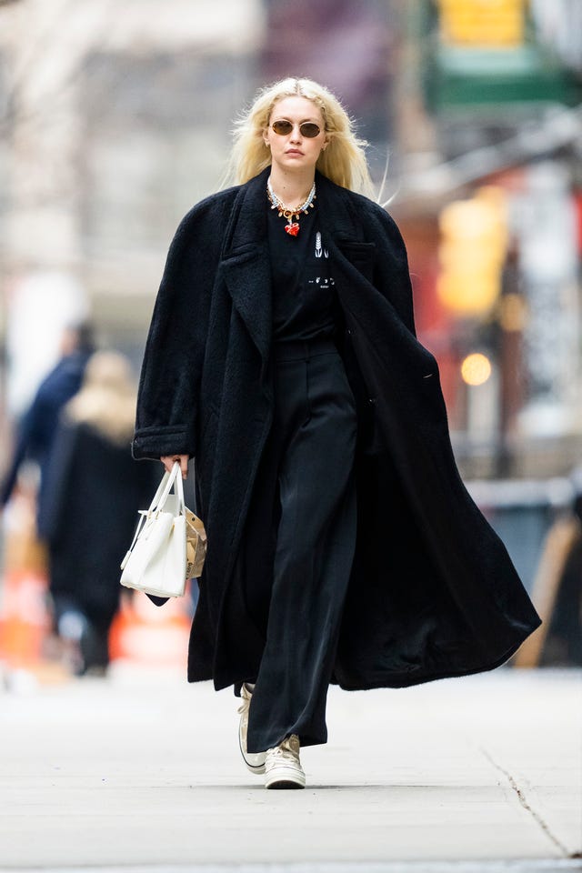 The model, dressed in all black, was spotted strolling in New York City's NoHo neighborhood on April 7.