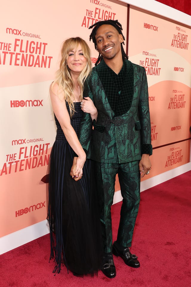 The co-stars posed together at the season 2 premiere of HBO Max's The Flight Attendant at Pacific Design Center on April 12 in West Hollywood, California.