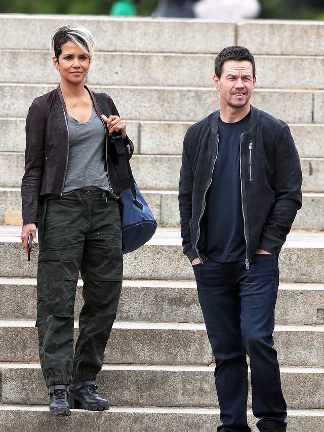 Actors Halle Berry and Mark Wahlberg filming scenes for new Netflix film Our Man From Jersey on April 28 in London, England.