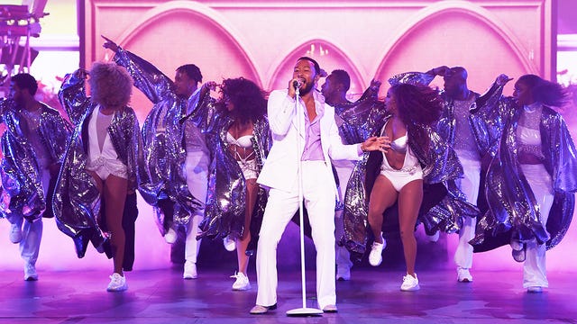 Model Chrissy Teigen sparkles in minidress and heels during an appearance on "The Tonight Show starring Jimmy Fallon" on April 25 in New York City.