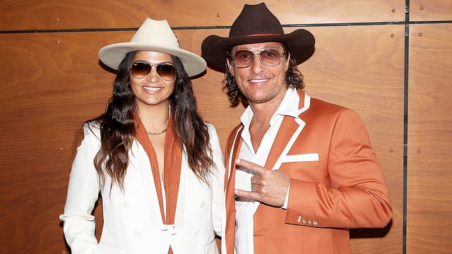 Actor Matthew McConaughey and his wife Camila Alves McConaughey attend the ribbon cutting ceremony for University of Texas at Moody Center on April 19 in Austin, Texas.
