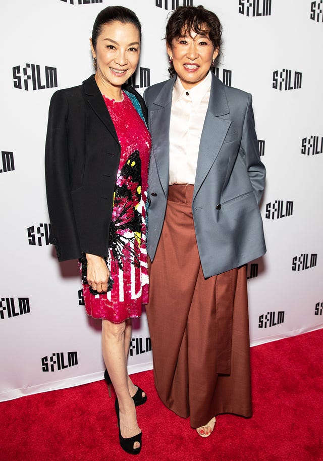 Actresses Michelle Yeoh and Sandra Oh arrive at A Tribute to Michelle Yeoh: In Conversation With Sandra Oh during the 2022 San Francisco International Film Festival at Spark Arts on April 29.