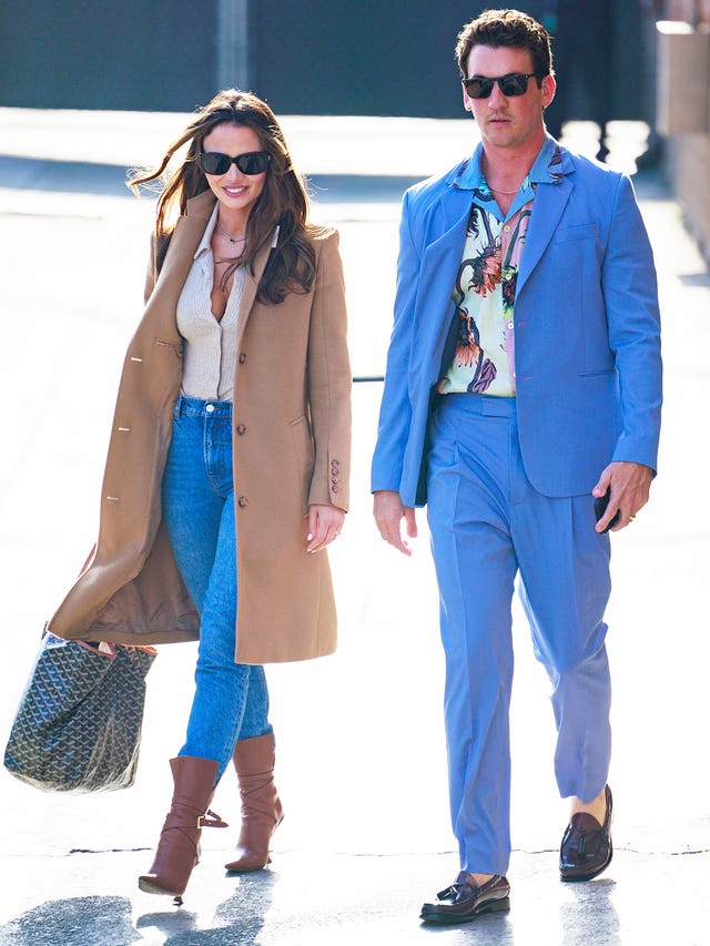Actor Miles Teller arrived with his wife, Keleigh Sperry, to Jimmy Kimmel Live on April 27 in Los Angeles, California.