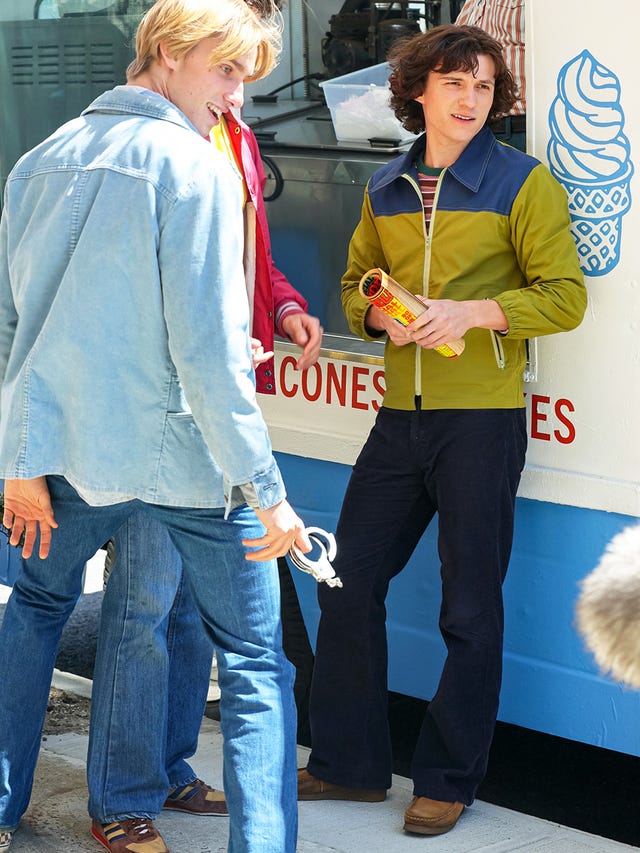 Actors Levon Thurman-Hawke and Tom Holland on the set of The Crowded Room on April 28 in New York City.