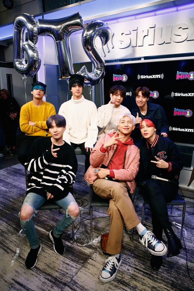 Up, up and away! The powerhouse K-pop boy band posed with some delightful BTS balloons while promoting their new Halsey-featured single, "Boy With Luv," at the SiriusXM Studios in New York City on April 12.