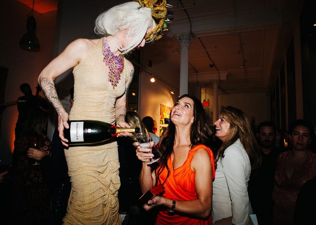 The Jane the Virgin actress was wowed by stilt walkers pouring Champagne Bollinger for guests at the New York Academy of Arts' 24th annual TriBeCa Ball in New York City on April 8.