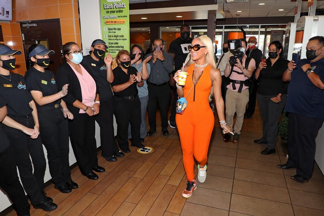 The rapper celebrated the launch of her signature order at McDonald's on Aug. 9 in Lynwood, California.