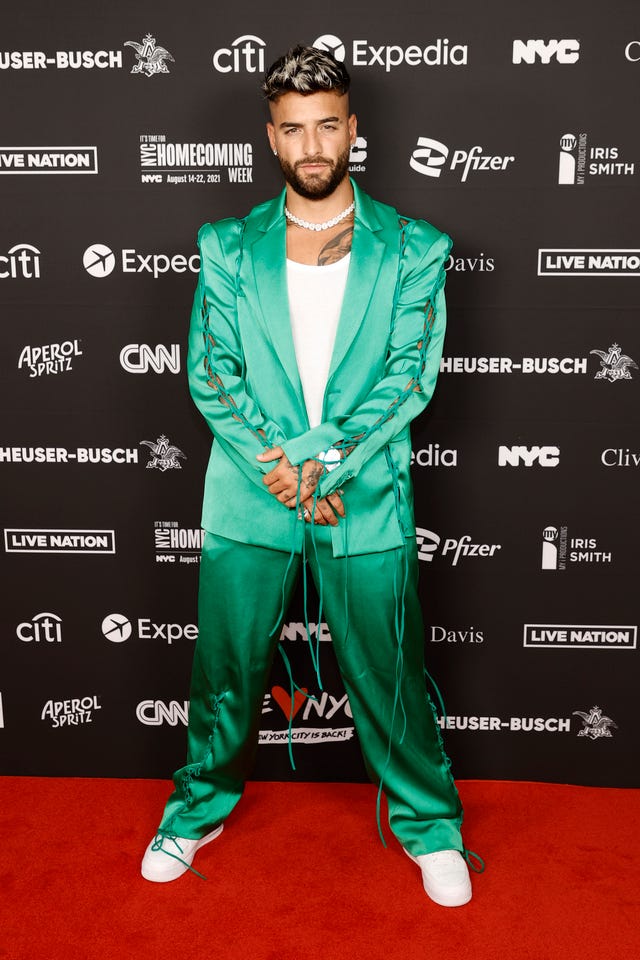 Sharply dressed in an aqua suit, the Colombian singer attended the We Love NYC: The Homecoming Concert produced by NYC, Clive Davis and Live Nation in New York City on August 21.