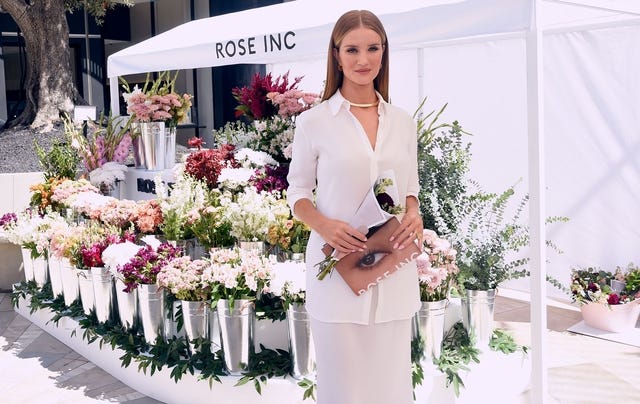 The pregnant supermodel, dressed in all white, celebrated the launch of Rose Inc at Westfield Century City in Los Angeles on August 28.