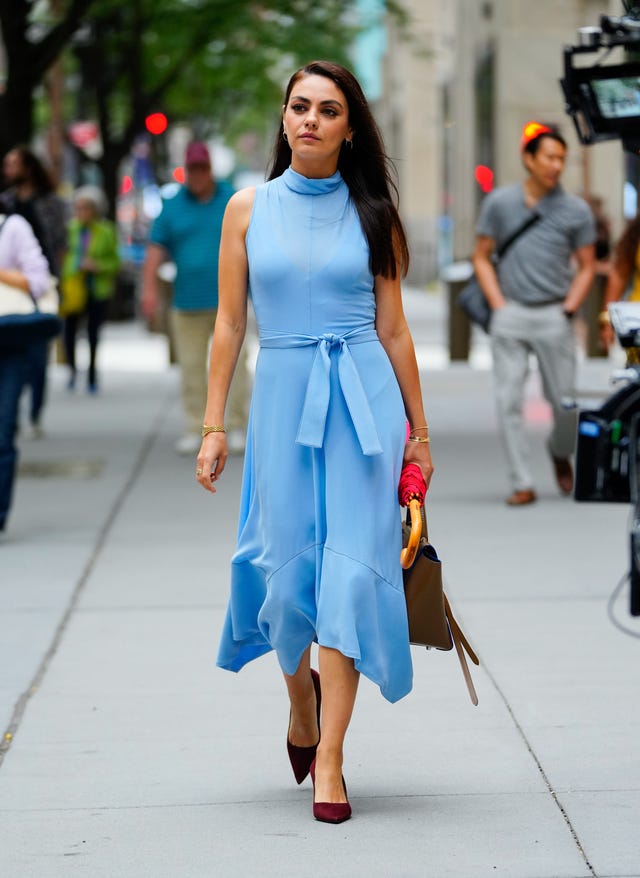The Jane the Virgin star was a lady in red on the set of Players on Aug. 5 in New York City.