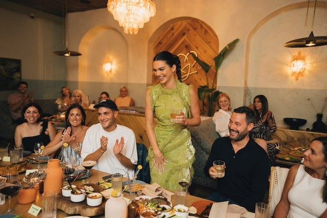 On Aug. 17, the model toasts with her 818 Tequila cocktail while enjoying dinner at Mon Ami in Santa Monica, California, where her group enjoyed the Mezze Platter, Lobster Alla Catalana Pasta, 7 Spice Chicken, and Loukoumades for dessert.