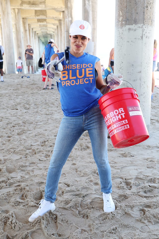 The actress hosts a beach clean-up at the 2023 US Open of Surfing, presented by SHISEIDO Blue Project, on Aug. 2 in Huntington Beach, California.