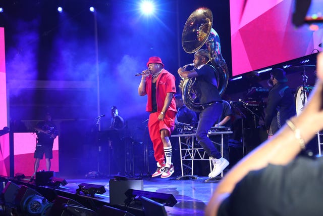 The hip-hop legends perform on Good Morning America at Central Park's Rumsey Playfield on Aug. 11 in New York City.