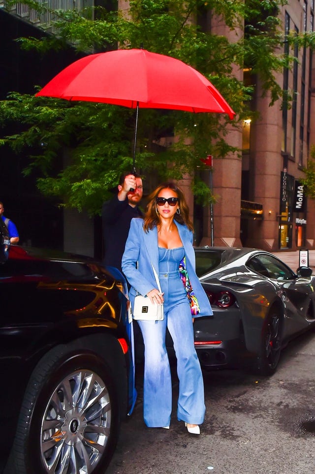 The actress is in head-to-toe denim as she steps out in New York City's Midtown neighborhood on Aug. 17.