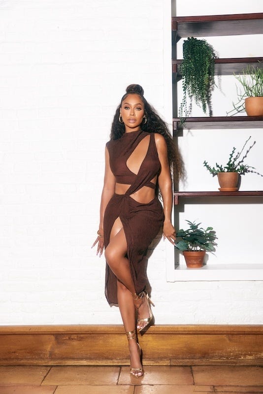 The actress celebrates the launch of the I.AM.GIA Platinum Collection, filled with lacy dresses, leather co-ord sets, deconstructed denim, and more, on Aug. 25 in Los Angeles, California.