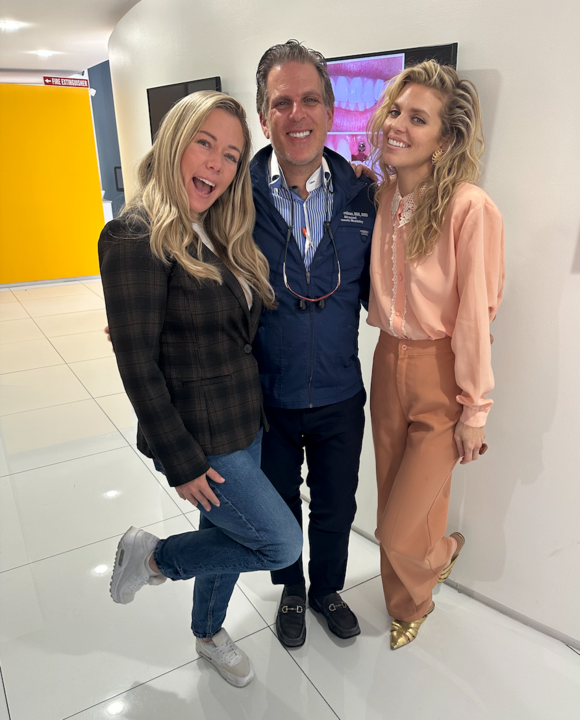 The reality television star, the celebrity dentist, and the actress are all smiles while visiting Dr. Joseph Goodman's office in Beverly Hills, California.