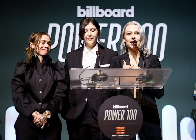 Julien Baker, Phoebe Bridgers and Lucy Dacus speak at the annual Billboard Power 100 party in Los Angeles, California.
