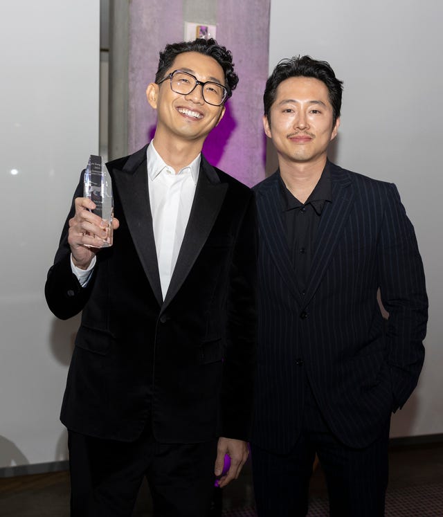 Award winner Lee Sung Jin and presenter Steven Yeun take a photo together at the Asia Society Southern California's 14th U.S.-Asia Entertainment Game Changers Awards Gala on Feb. 20, 2024 in Los Angeles, California.