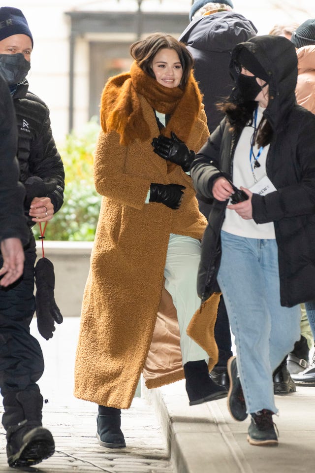The actress was all bundled up while filming season 2 of Only Murders in the Building in New York City's Upper West Side neighborhood on Jan. 24.