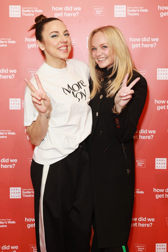The Spice Girls members, a.k.a. Sporty Spice and Baby Spice, reunite at the after-party for Julie Cunningham & Company's how did we get here? at Sadler's Wells Theatre on Jan. 24 in London, England.