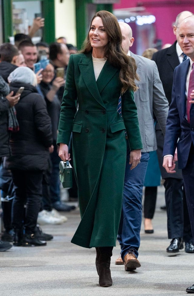 The Princess of Wales visits the iconic Kirkgate Market to meet with vendors and local people to talk about their experiences of early childhood on Jan. 31 in Leeds, England.