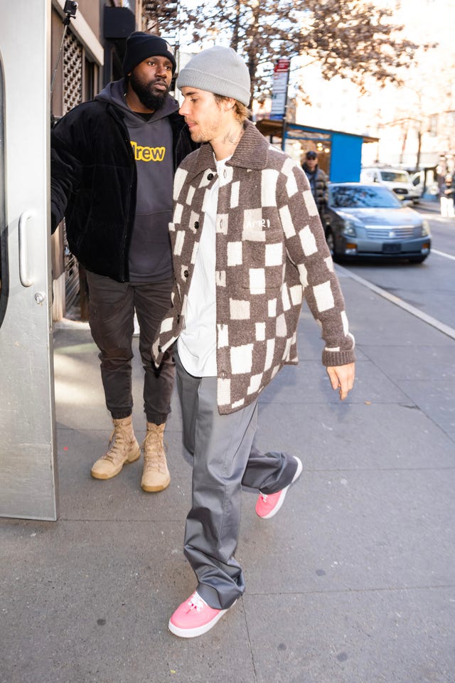 The singer is seen in a checkered sweater in Greenwich Village on Jan. 28 in New York City.