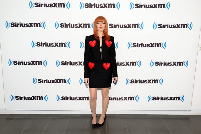 The Poker Face star looks ready for Valentine's Day in her heart-adorned outfit as she visits SiriusXM Studios on Jan. 31 in New York City.