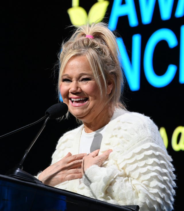 The actress speaks on Nov. 19 at the Friendly House 32nd annual awards luncheon at the Beverly Hilton Hotel in Beverly Hills, California. At the event, Friendly House alum and honorees were recognized for their work with the non-profit organization, which aids women in their alcohol and substance abuse recovery.