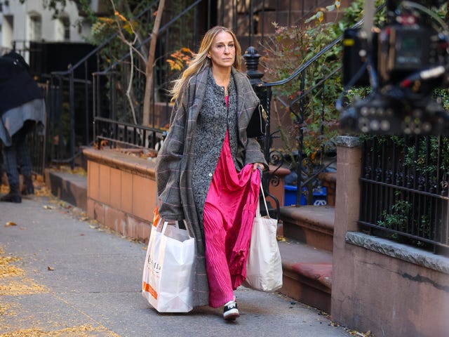 The actress is spotted filming a scene as Carrie Bradshaw for And Just Like That... season 2 on Nov. 2 in New York City.