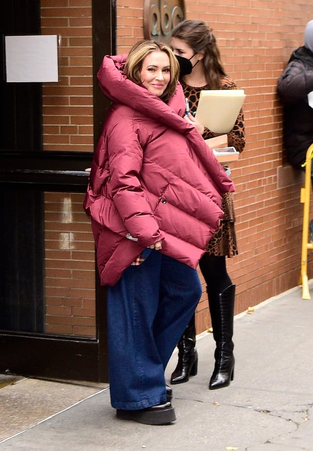 The actress is seen leaving The View studio dressed in a cute pink puffer jacket in New York on Nov. 29.