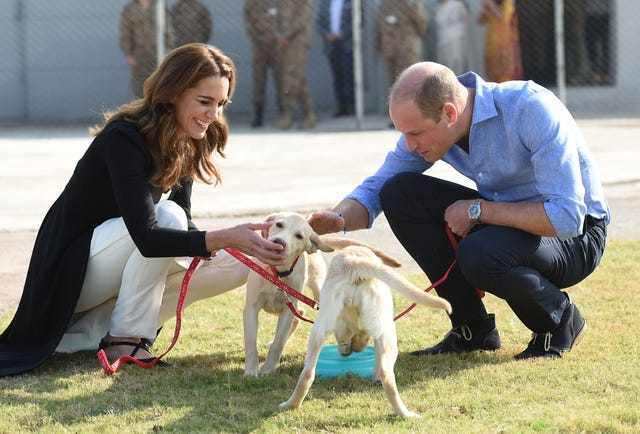 The Duchess and Duke of Cambridge met some very cute pups while visiting the Army Canine Centre in Islamabad during the fifth day of their royal tour of Pakistan on Oct. 18.