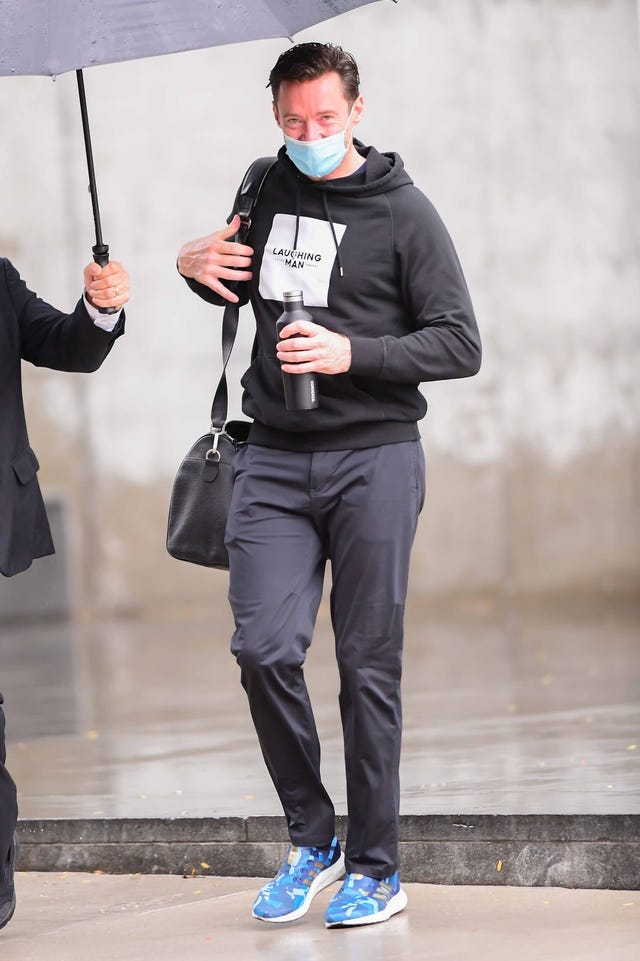 The Wolverine star braved the rain while out in New York City's Soho neighborhood on Oct. 13.