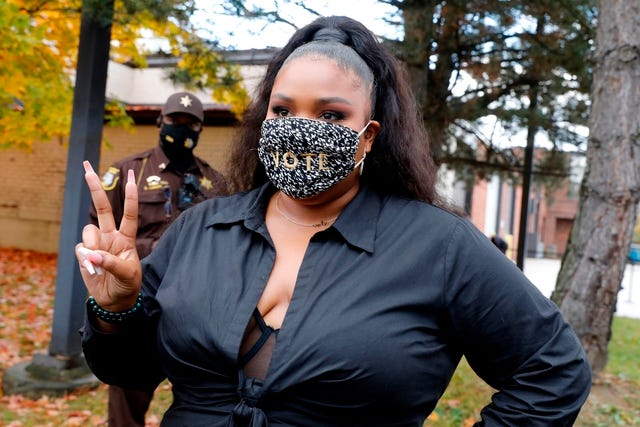 The rapper greeted supporters at a canvass kickoff event for the Biden-Harris presidential campaign held at Focus: Hope in Detroit, Michigan, on Oct. 23. Focus: Hope is a non-profit organization whose aim is to overcome racism and poverty by providing education and training for underrepresented minorities and others.