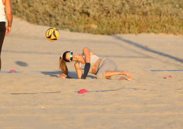 The supermodel got down and dirty while playing volleyball in Los Angeles, California, on Oct. 27.