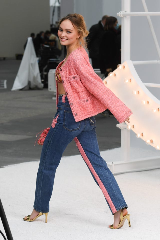 The actress, who is the daughter of Johnny Depp and Vanessa Paradis, had a pep in her step when she arrived to the Chanel Womenswear Spring/Summer 2021 show as part of Paris Fashion Week on Oct. 6 in Paris, France.