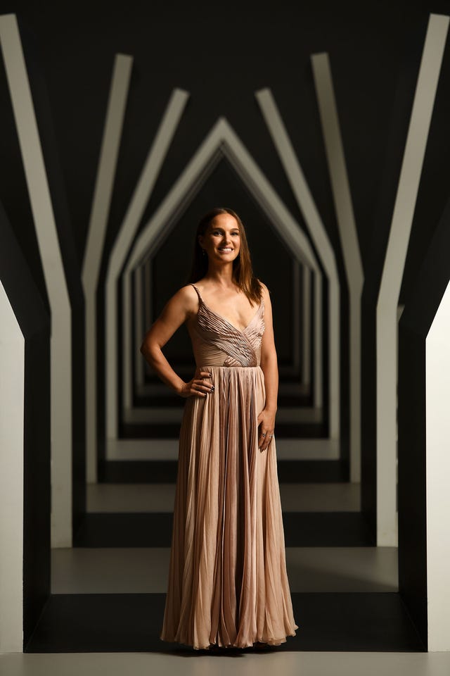 The Vox Lux star looked ethereal in a blush-hued gown as she posed for an otherwise moody portrait inside the Escher x Nendo/Between Two Worlds Exhibition ahead of the NGV Gala 2018 at the National Gallery of Victoria in Melbourne, Australia, on Dec. 1.